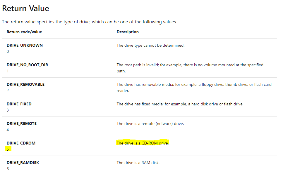 파일을 다운로드 받을 필요없이 GetDriveTypeA에 대해 구글에 검색해보면
