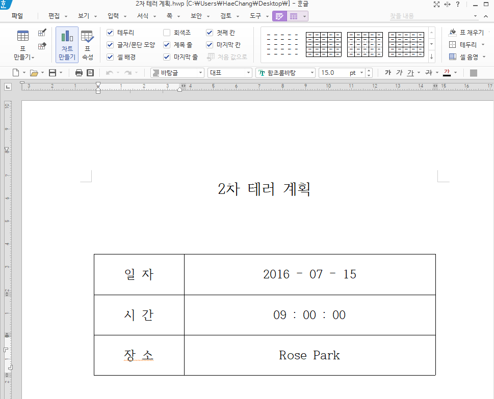 한글 파일을 열어 장소도 쉽게 찾을 수 있었다.