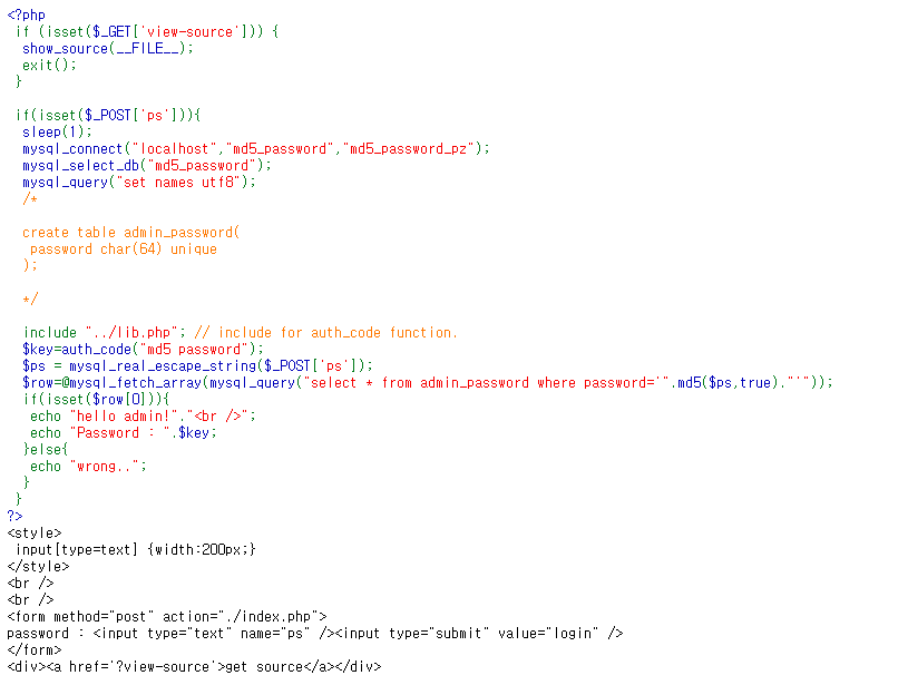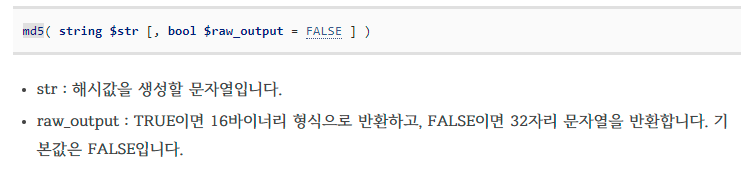 문제에서 md5('value', true)라는 힌트로 보아 md5함수에 취약점이 존재한다고 생각했고,
