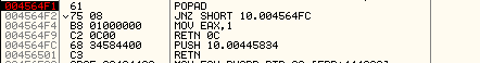 POPAD가 있는 부분을 찾아 BP를 걸고, F9를 누르게 되면