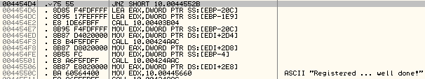 해당 점프문이 등록성공으로 가는 분기점이므로 OPCODE를 구할 수 있다.