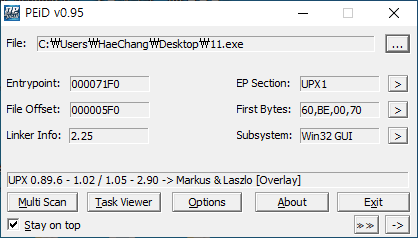 역시나 패킹이 되어있었고, UPX로 패킹된 파일이었다.