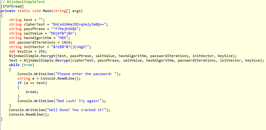 위와같이 패스워드를 입력하는 구조이고, 틀리게되면 Bad Luck! Try again! 이라는 문자열을 출력하고,