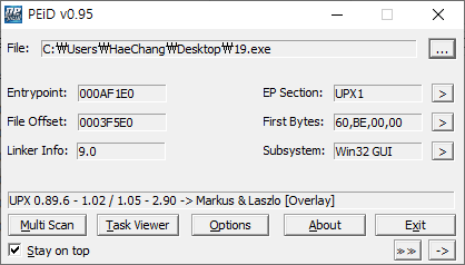 압축을 풀고, PEID에 올려봤다.