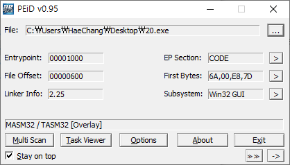 PEID에 파일을 올려봤습니다.