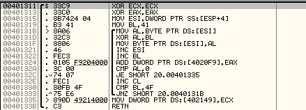 - XOR시킨 AL의 값을 ESI의 1바이트에 넣습니다.