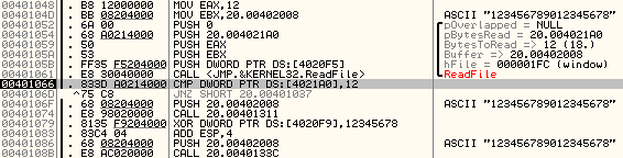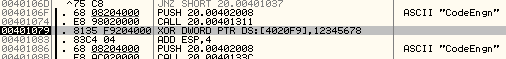 또한, CRACKKEY3.KEY파일은 돌아와서 4020F9의 값 4바이트와 0x12345678을 XOR연산하는 것을 볼 수 있습니다.