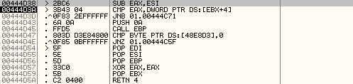 F8을 눌러 한줄씩 실행하다보면 JNB점프문에서 점프하게된다.