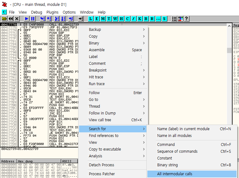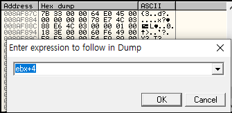 아래의 덤프창에 ebx+4로 이동하여 비교하는 부분을 알 수 있었다.