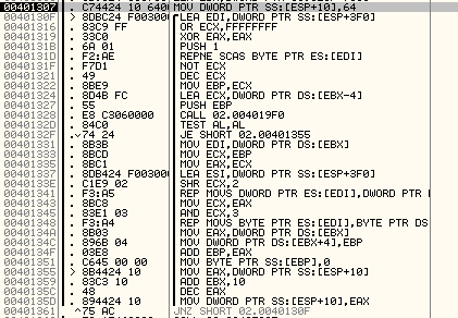 아래의 이 부분에서 아래의 명령을 64번 반복시키는 것을 볼 수 있었고, 이 명령으로 인해 따로 특별한 일은 생기지 않았다.