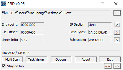 따로 패킹은 안되어 있고, 어셈으로 제작된 프로그램인 것을 알 수 있었다.