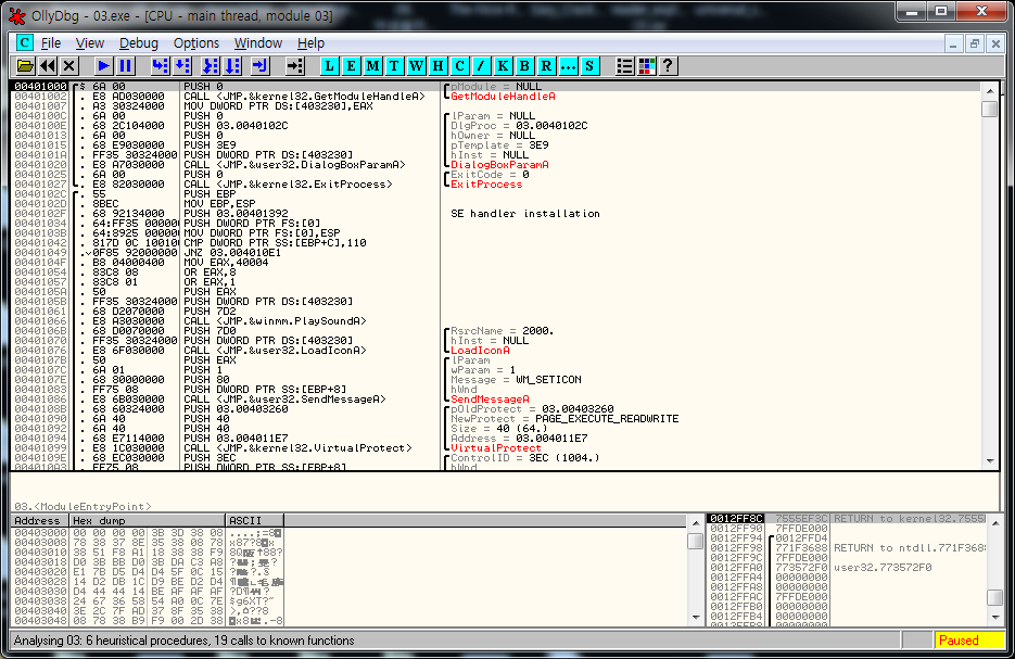 윈도우 10 환경에서는 되지 않는 것으로 보여 가상환경의 윈도우 7에서 올리디버거에 올려봤다.
