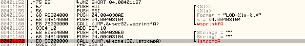 문자열을 비교하는 부분에 BP를 걸고, 실행시켜봤다.