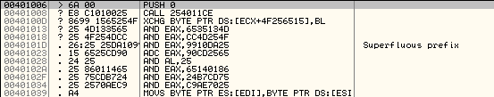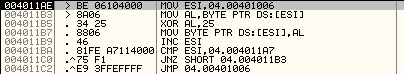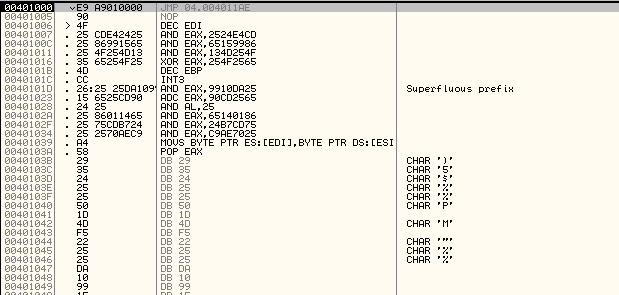 올리디버거로 열어봤지만 처음보는 구조에 2번째 당황을 했고, F8을 눌러 4011ae로 이동해봤다.
