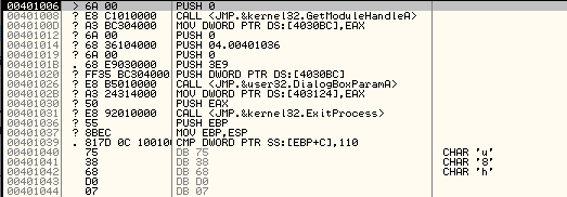 이부분의 반복문을 진행하고, 401006으로 다시 점프하는 것을 볼 수 있다.