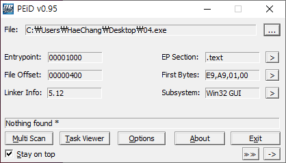 우선 PEID에 L04파일을 올려봤다.