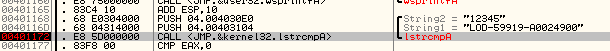 BP를 건 부분 위의 문자열 비교부분에 또 시리얼로 추정되는 문자를 볼 수 있었다.