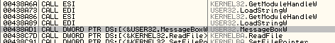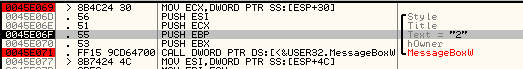 아래의 스택에 보면 프로그램 실행시 나오는 메세지박스와 동일하다는 것을 알 수 있었고,