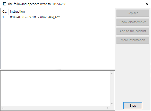 주소목록에 옮겨진 값을 오른쪽 마우스 눌러 Find out what writes to this address를 눌러보도록 하자.
