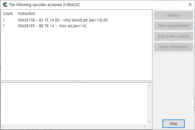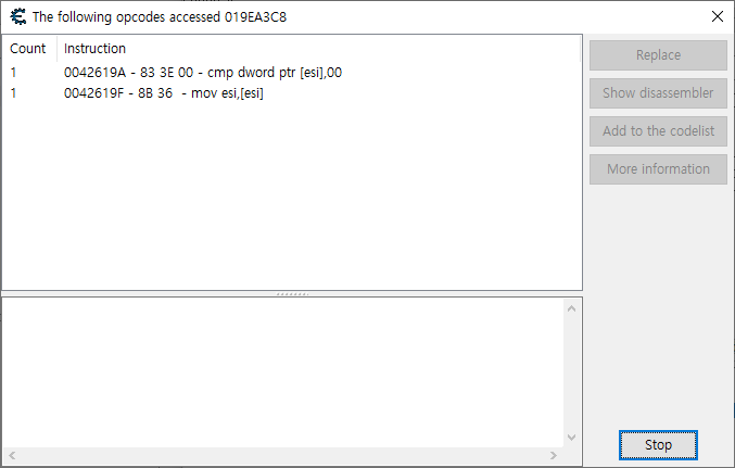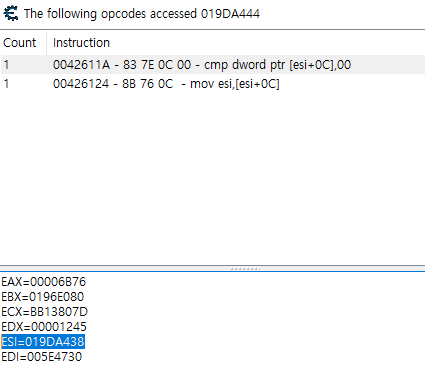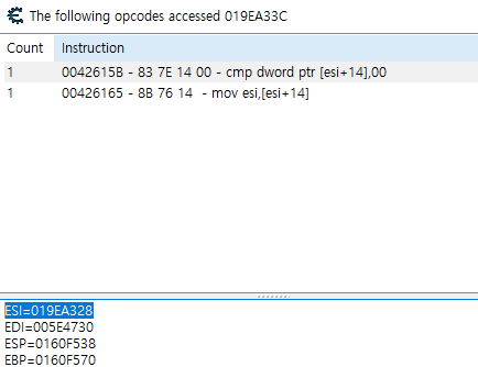 값을 찾았고 F6을 눌러 opcode write를 보도록 하겠다.