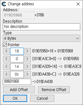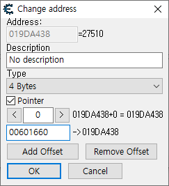 아래에 해당 주소를 적고 Add Offset을 통해 우리가 구한 오프셋 갯수만큼 추가시킨다.