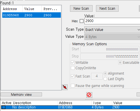4번의 스캔을 통해 결국 static으로 된 주소를 발견할 수 있었고, 해당 값을 더블클릭하여