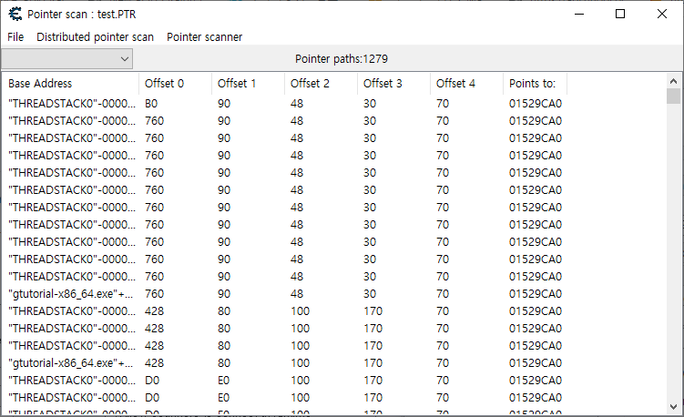 이런식으로 맨 아래 옵션인 Pointers must end with speific offsets를 눌러 오프셋을 추가하고 OK를 누른다.