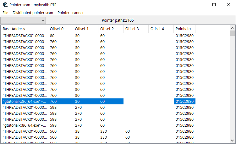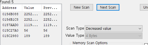 이 값 또한 주소목록으로 내려 포인터스캔을 진행하겠다.