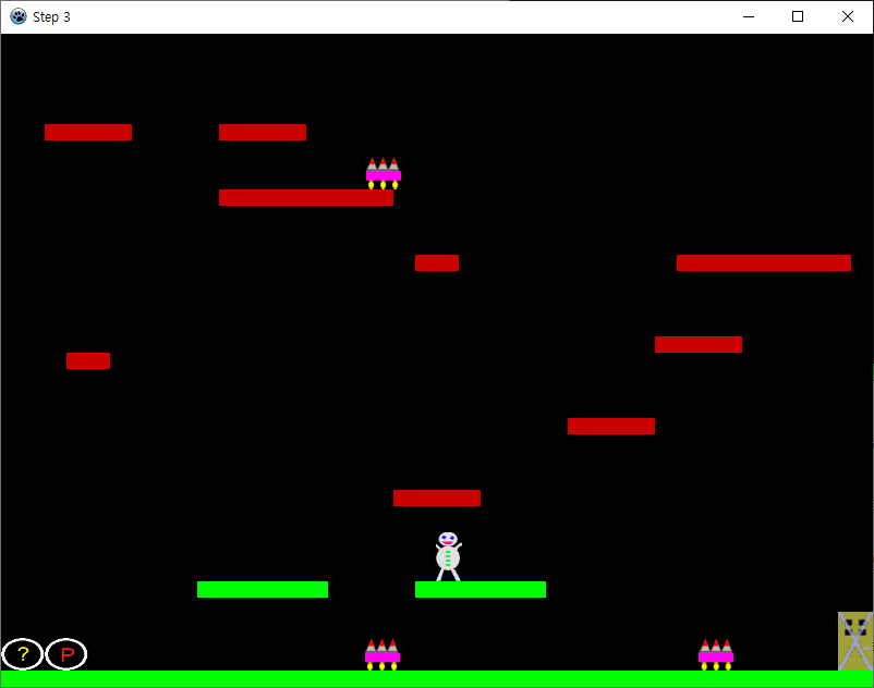 이번 문제는 스노우브라더스가 연상되는 캐릭터로 모든 발판을 다 밟은 후 오른쪽에 있는