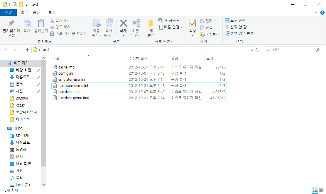 설정이 끝나면 위와같이 AVD매니저에 가상 머신이 설치된 것을 볼 수 있고, 오른쪽 메뉴버튼에 Show on Disk로 해당 폴더에 들어간다.