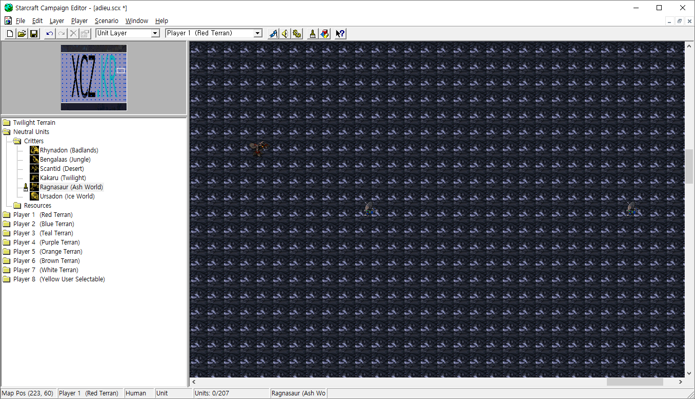 맵에디터로 열어보면 미니맵에 xcz.kr이라고 나온 것 말고는 우리가 눈으로 확인할 수 있는 것은 없었다.