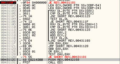 이렇게 바로 윗 부분에 입력값을 비교 후 점프하는 것을 볼 수 있다.