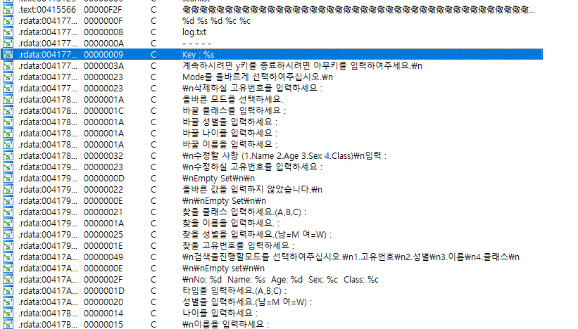 IDA를 통해 해당 프로그램을 열고, Shift + F12 를 누르면 스트링을 검색해준다.