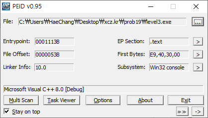 해당 프로그램을 PEID에 먼저 올려보도록 하겠다.
