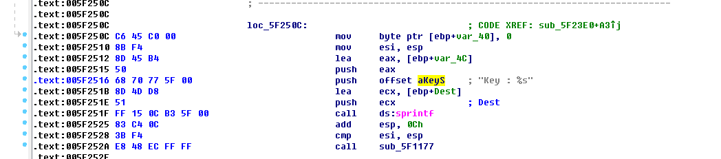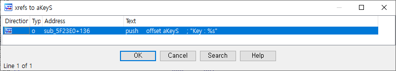 Key값이 출력되는 부분을 찾을 수 있었고, 해당 부분으로 들어가보도록 하겠다.