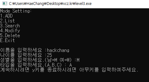1 hackchang 25 M A2 Hack 22 M B3 Hack 22 M A- - - - -
