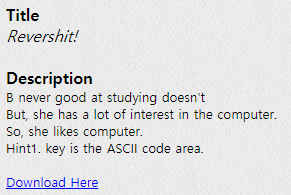 이번문제는 제목으로 봐서 리버싱 문제라는 생각을 했다.