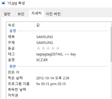 tagtagtag라는 말을 보고, 해당 파일의 속성을 확인해봤다.