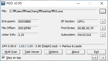 역시나 UPX로 패킹이 된 파일이었고, 언패킹툴을 통해 언패킹을 진행하였다.
