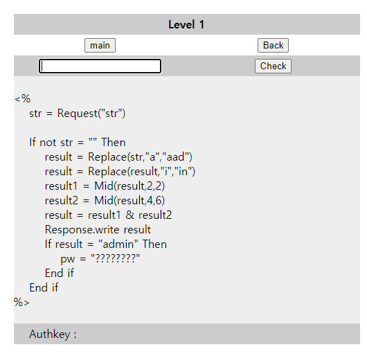 request로 str을 날리면 아래에서 result값에 대한 연산 후 result가 admin일 경우 pw를 출력해주는 느낌이다.