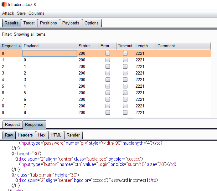 이렇게 0~9999까지 1씩 증가하는 브루트포스를 진행해보도록 하겠다.