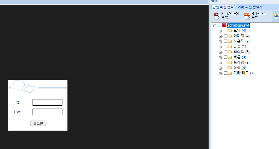 swf파일이 전부인데 로그인 폼이 나오는 것이 신기했다.