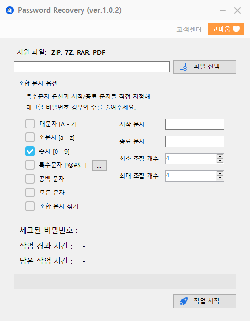 패스워드 리커버리 암호가 설정된 파일의 암호가 기억이 안날 때 리커버리 툴이 암호를 찾아드립니다. 다운로드 라이선스 : 개인, 기업, 공공기관 무료 Windows 7, 2008 이상 | .NET 4.O 이상