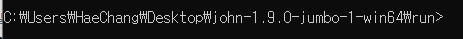 이렇게 CMD창에서 해당 폴더에 들어가서 john pass.txt 를 입력한다.