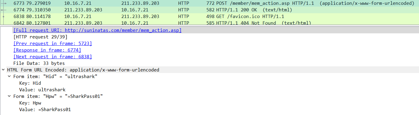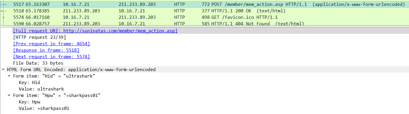 이 마지막 패킷의 ID와 PASSWORD로 로그인을 해보도록 하겠다.