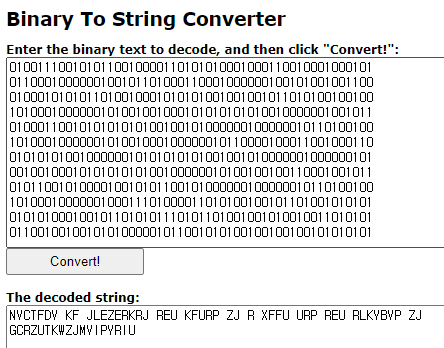 Please note: any spaces or colons (:) in the binary string will be removed. Need to convert text to binary? Use Our Text to Binary Converter Tool! --- Read more about binary in Wikipedia Privacy Policy Sitemap Keywords: binary decode a string text, tool, o