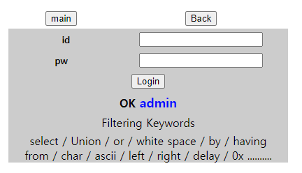 하지만 우리가 해야할 일은 로그인이 아닌 admin의 비밀번호를 알아내는 것이기 떄문에