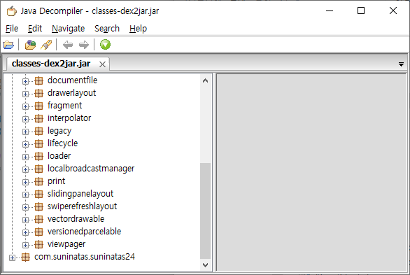 그리고 Java Decompiler를 통해 해당 jar 파일을 불러오면 이렇게 해당 jar 파일의 클래스들을 볼 수 있게 된다.