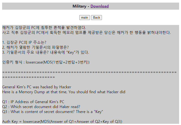 우선 위의 메모리덤프 파일을 다운로드 받도록 하겠다.